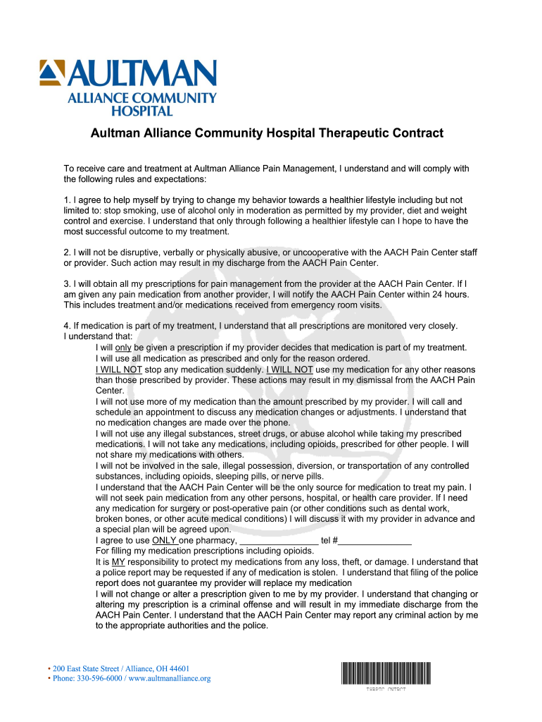 To receive care and treatment at Altman Alliance Pain Management, I understand and will comply with