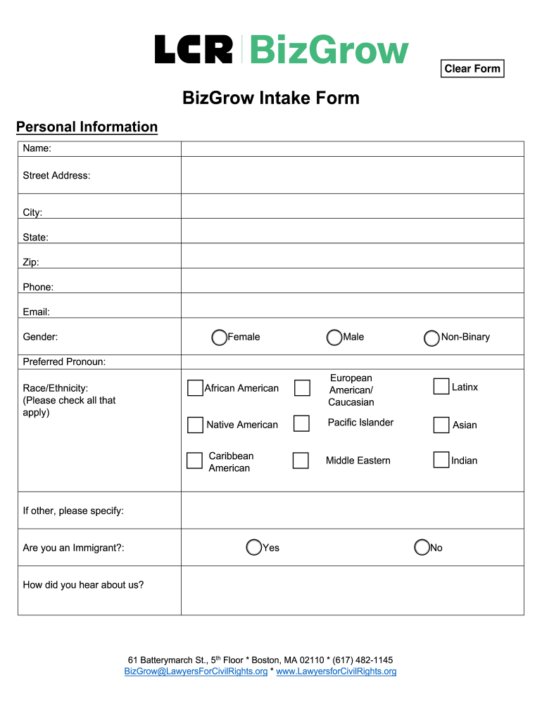 Get the free bizgrow intake form fillable pdf.pdf