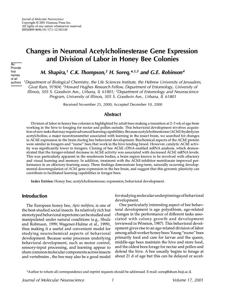 Edit journal of molecular neuroscience. Rearrange and rotate pages, add and edit text, and use additional tools. To save changes and return to your Dashboard, click Done. The Documents tab allows you to merge, divide, lock, or unlock files.
