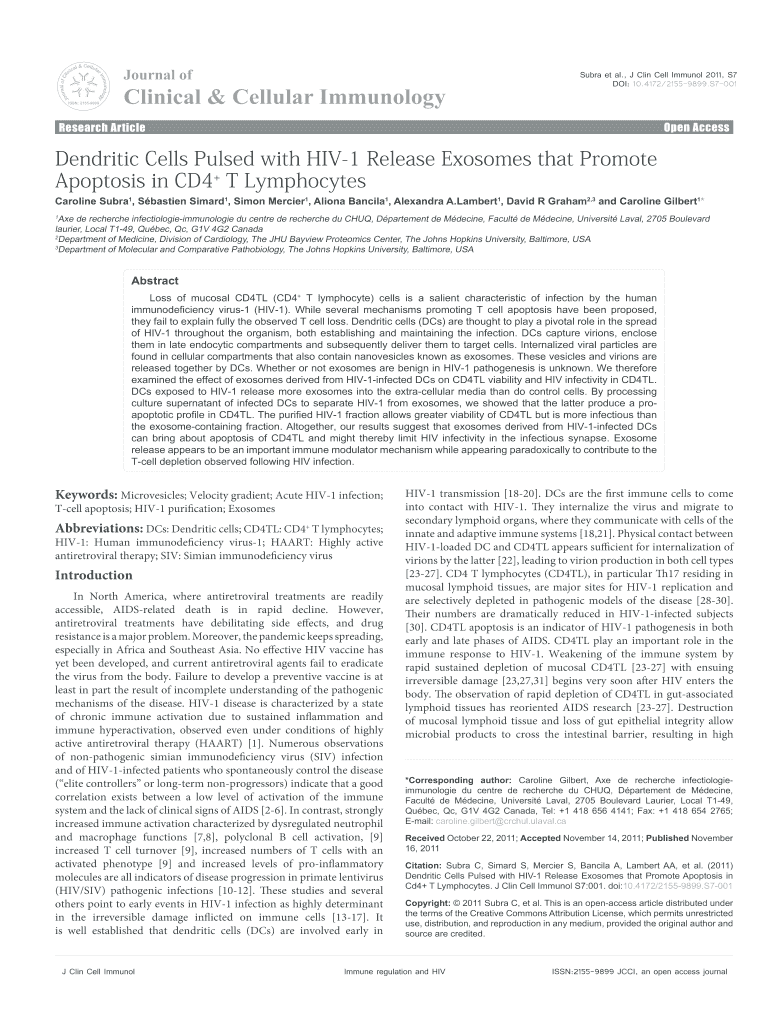 Ural of CLI Oenology mm y oil & Cellular ca Nissan: 21559899Journal clinical & Cellular ImmunologyResearch Article Research ArticleSubra et al., J Clan Cell Immune 2011, S7 DOI: 10.4172/21559899.