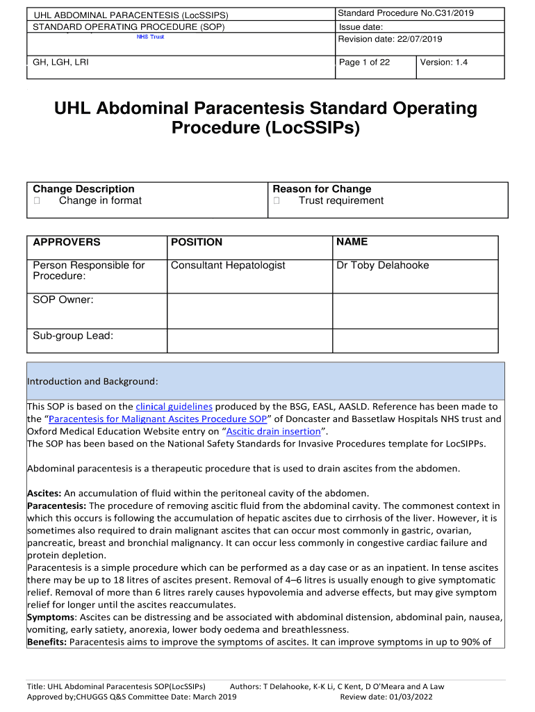 STANDARD OPERATING PROCEDURE (SOP)Standard Procedure No. C31/2019GH, GH, LRI Page 1 of 22Issue date: