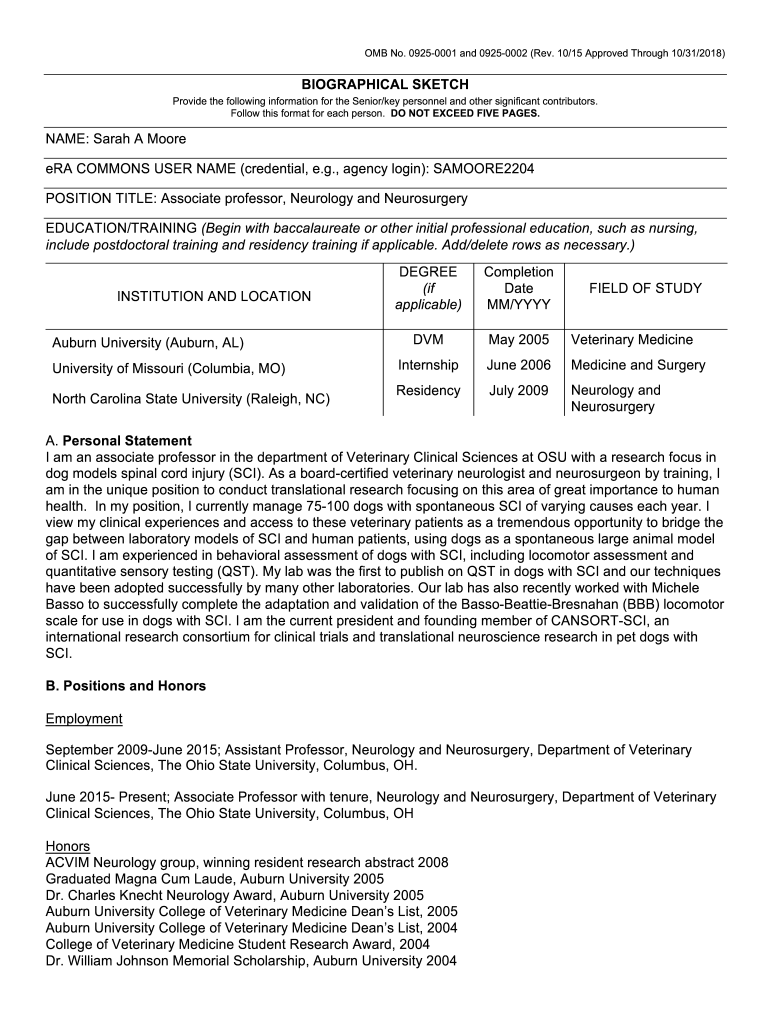 OMB No. 09250001 and 09250002 (Rev. 10/15 Approved Through 10/31/2018)BIOGRAPHICAL SKETCH