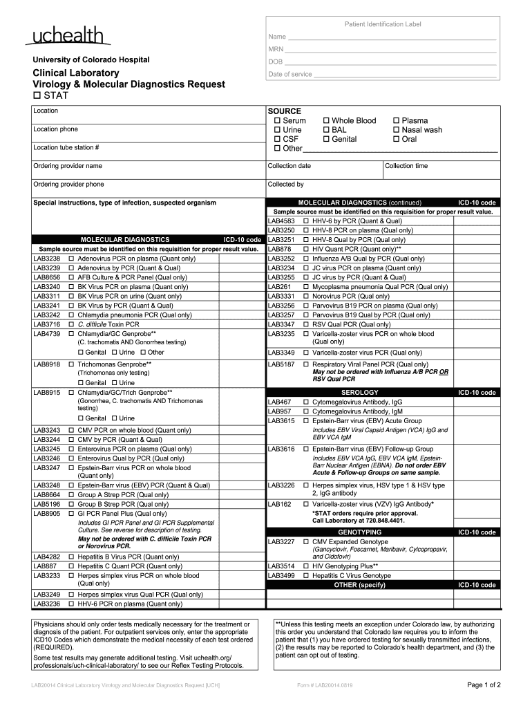 Get the free LAB20014 Clinical Laboratory Virology and Molecular Diagnostics Request UCH