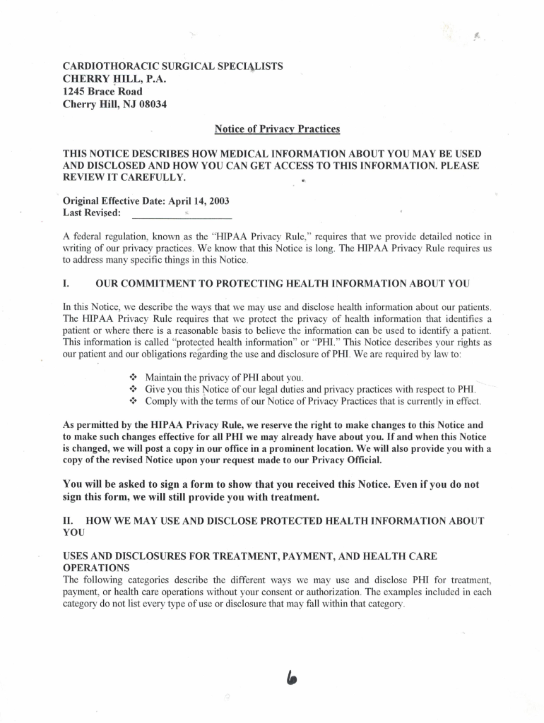 CARDIOTHORACIC SURGICAL SPECIALISTS 1245 BRACE RD CHERRY HILL, NJ 08034 DR. AMBIT NAY AR PATIENT PRIVACY ACKNOWLEDGEMENT: I RECEIVED AND UNDERSTAND THE CARDIOTHORACIC SURGICAL SPECIALISTS NOTICE OF