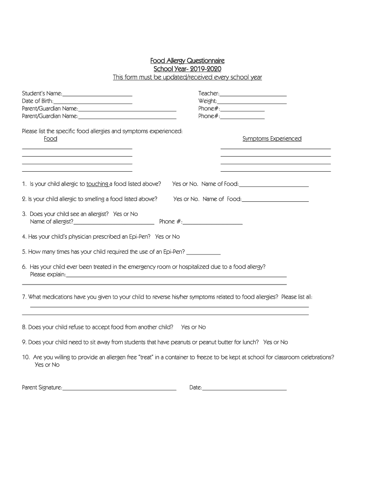 Food Allergy Questionnaire