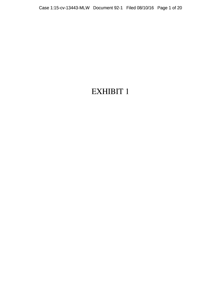 Case 1:15cv13443MLW Document 921 Filed 08/10/16-Page 1 of 20EXHIBIT 1Case 1:15cv13443MLW Document 921 Filed 08/10/16-Page 2 of 20UNITED STATES DISTRICT COURT DISTRICT OF MASSACHUSETTSDANAFARBER CANCER