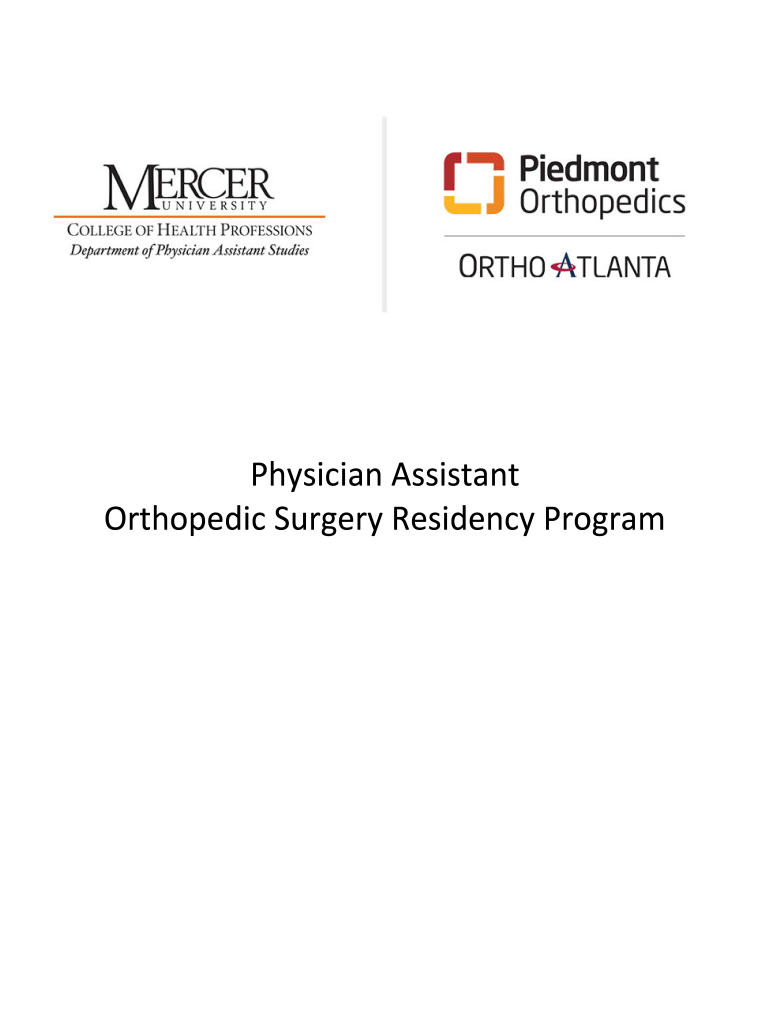 Physician Assistant Orthopedic Surgery Residency ProgramPhysician Assistant Student Handbook 01 Introduction 02 Mission Statement 03 Program Description 04 Application Process 05 Core Curriculum &