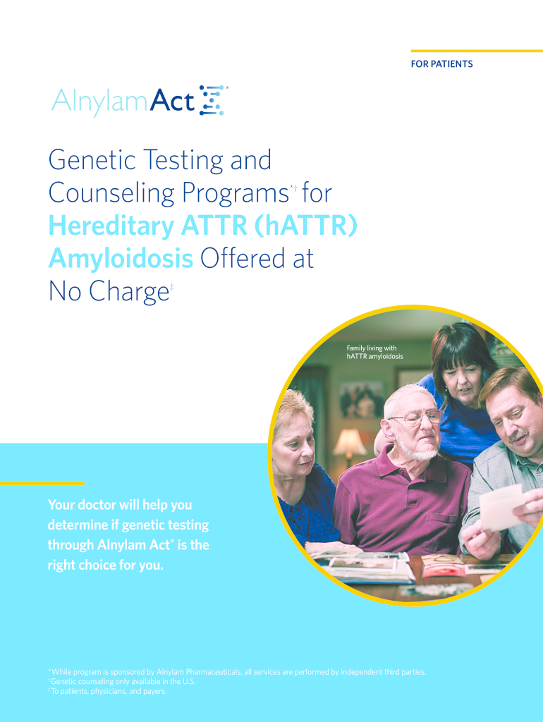 FOR PATIENTSGenetic Testing and Counseling Programs for Hereditary ATTAR (hater) Amyloidosis Offered at No Charge *Family living with hater amyloidosisYour doctor will help you determine if genetic