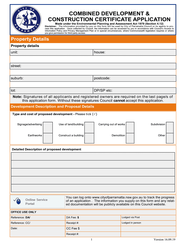 COMBINED DEVELOPMENT & CONSTRUCTION CERTIFICATE APPLICATION Made under the Environmental Planning and Assessment Act 1979 (Section 4.12)Disclaimer: The information provided by you on this form will