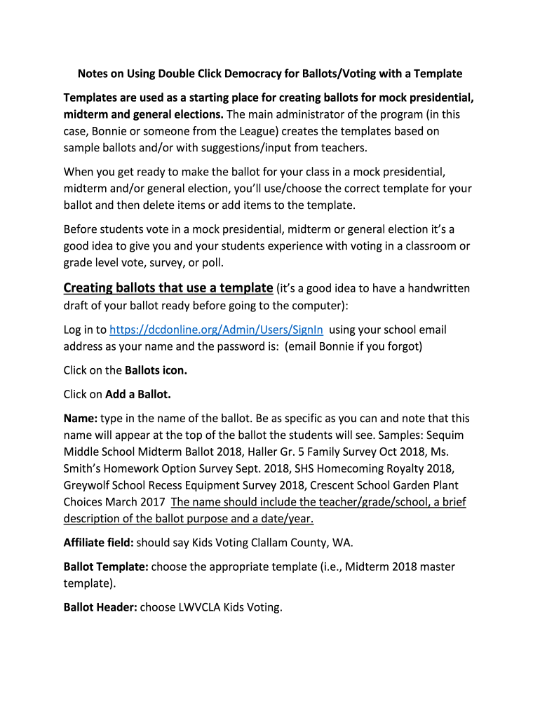 Notes on Using Double Click Democracy for Ballots/Voting with a Template