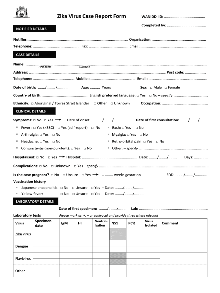 Edit your zika virus case report form online