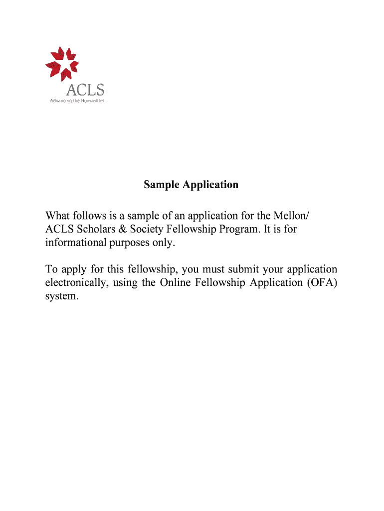 Sample Application What follows are a sample of an application for the Mellon/ ACLs Scholars & Society Fellowship Program. It is for informational purposes only. To apply for this fellowship, you