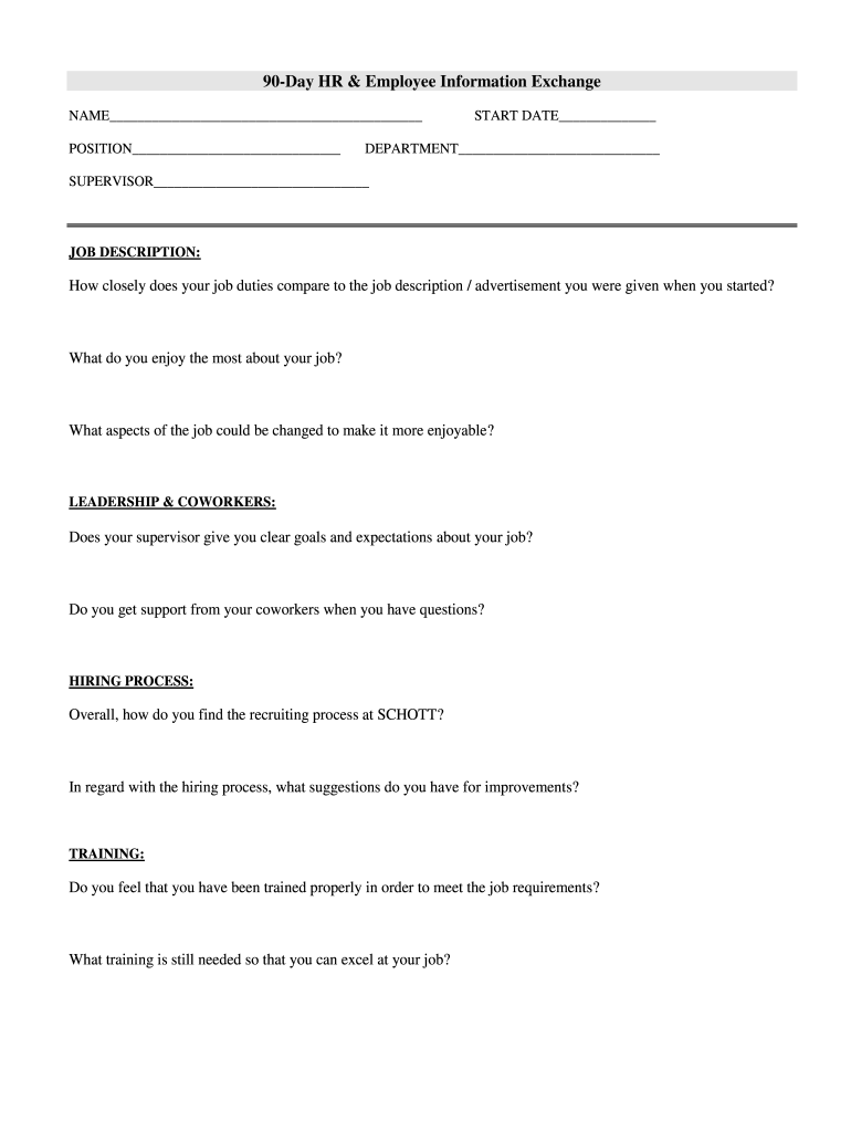 90Day HR & Employee Information Exchange NAME POSITION START DATE DEPARTMENT SUPERVISOR JOB DESCRIPTION:How closely does your job duties compare to the job description / advertisement you were given