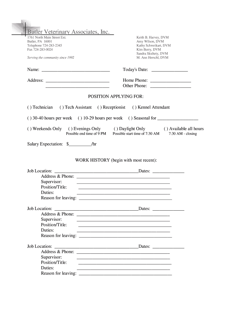 Submit the form: Submit the completed form to Butler Veterinary Associates Inc. either in person or through their designated channels.