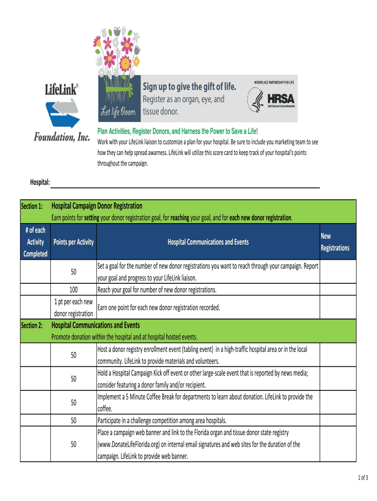 Get the free Hospital Campaign Donor Registration ... - LifeLink Foundation