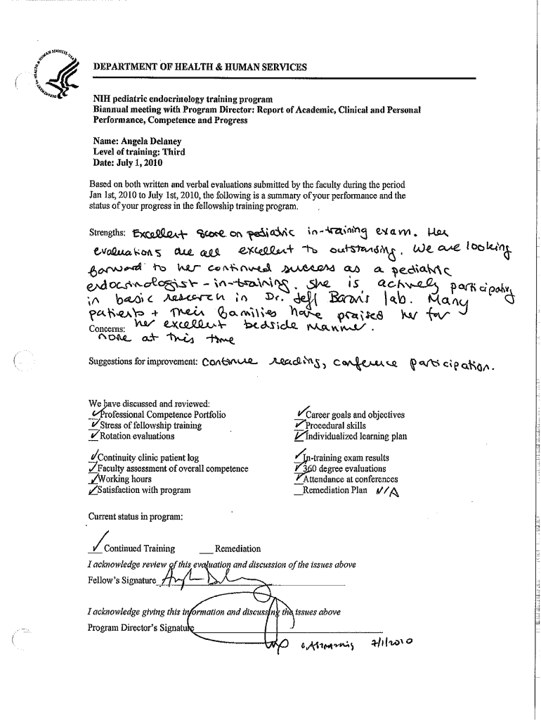 DEPARTMENT OF HEALTH & HUMAN SERVICES(NIH pediatric endocrinology training program Biannual meeting with Program Director: Report of Academic, Clinical and Personal Performance, Competence and Progress