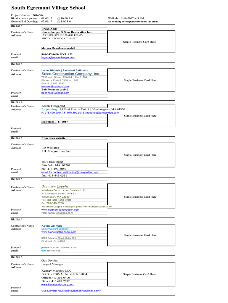 South Fremont Village School Project Number: 2016504 Bid document pickup 01/06/17 General Bid Opening: 02/09/17 10:00 AM 1:00 Walk through 1192017 at 3 PM All bidding correspondence to be via emailed