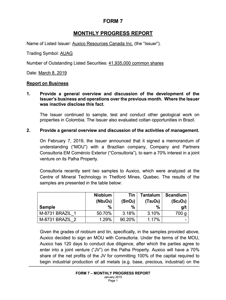 Get the free Name of Listed Issuer: Auxico Resources Canada Inc