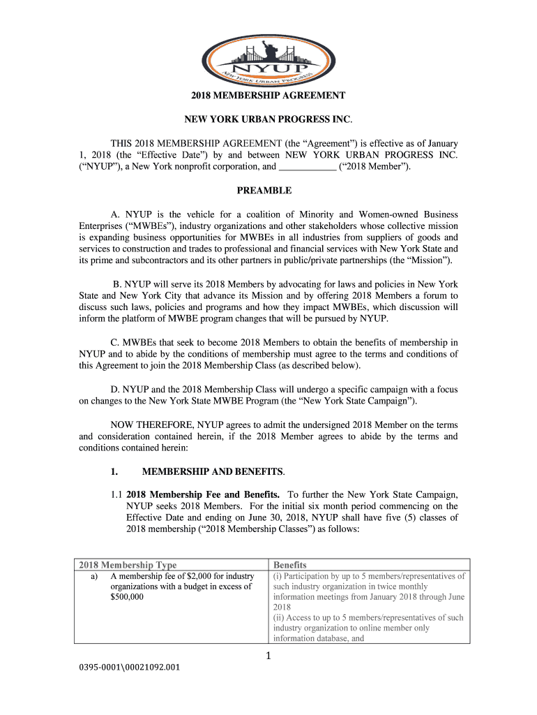 2018 MEMBERSHIP AGREEMENT NEW YORK URBAN PROGRESS INC. THIS 2018 MEMBERSHIP AGREEMENT (the Agreement) is effective as of January 1, 2018 (the Effective Date) by and between NEW YORK URBAN PROGRESS