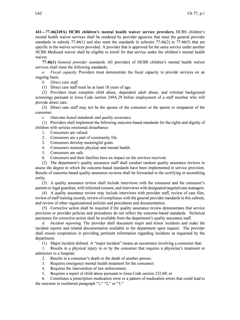 Get the free 46(249A) HCBS childrens mental health waiver service providers