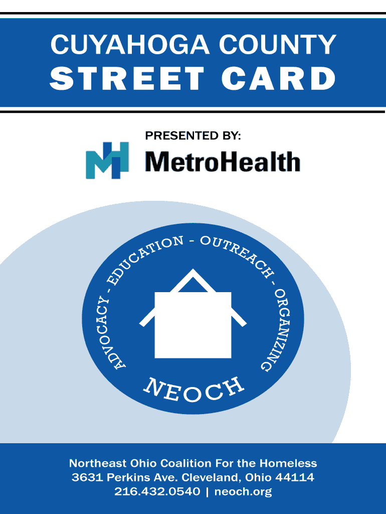 CUYAHOGA COUNTYSTREET CARD PRESENTED BY:Northeast Ohio Coalition For the Homeless 3631 Perkins Ave. Cleveland, Ohio 44114 216.432.0540 né och. This Street Card is a resource guide for the people