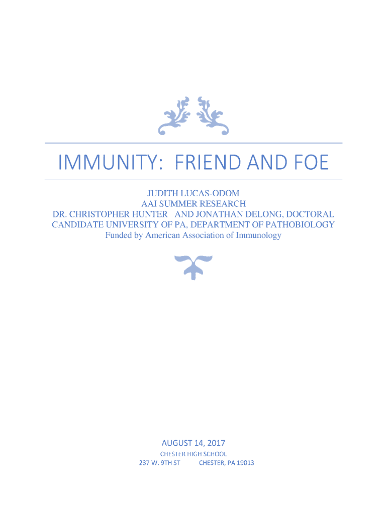 Get the free Immunity. JUDITH LUCAS-ODOMAAI SUMMER RESEARCHDR. CHRISTOPHER HUNTERAND JONATHAN DEL...
