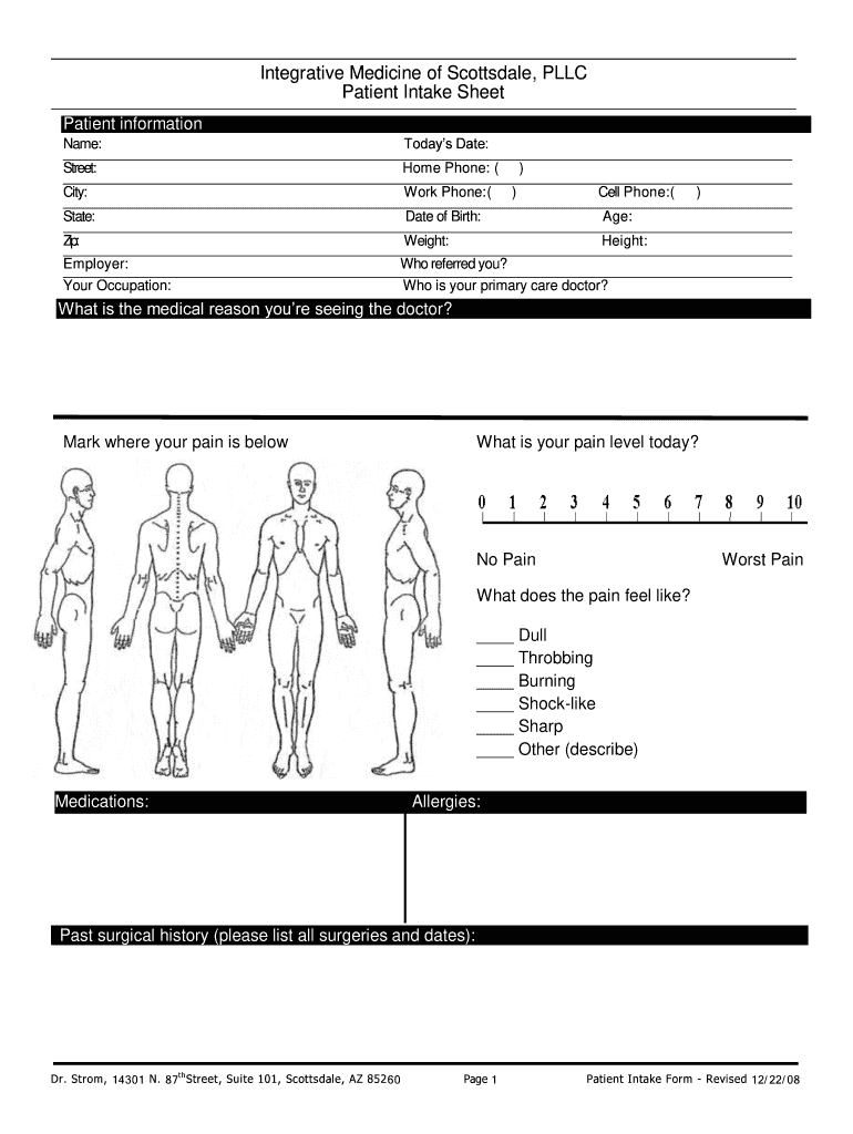 Integrative Medicine of Scottsdale, LLC Patient Intake Sheet Patient information Name: Street:Home Phone: ()City:Work Phone:(State:Date of Birth:Age:Zip:Weight:Height:Employer:Who referred you? Your