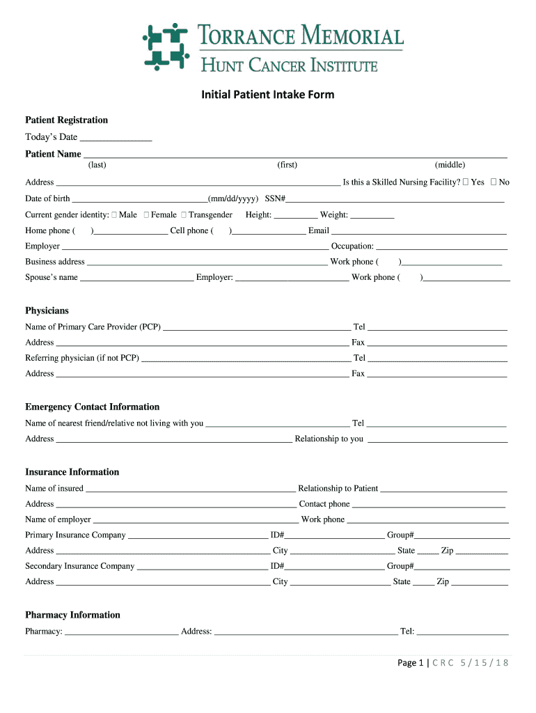 Initial Patient Intake Form Patient Registration Today's Date Patient Name (last)(first)(middle)Address Is this a Skilled Nursing Facility? Renovate of birth (mm/dd/YYY) SSN# Current gender identity: