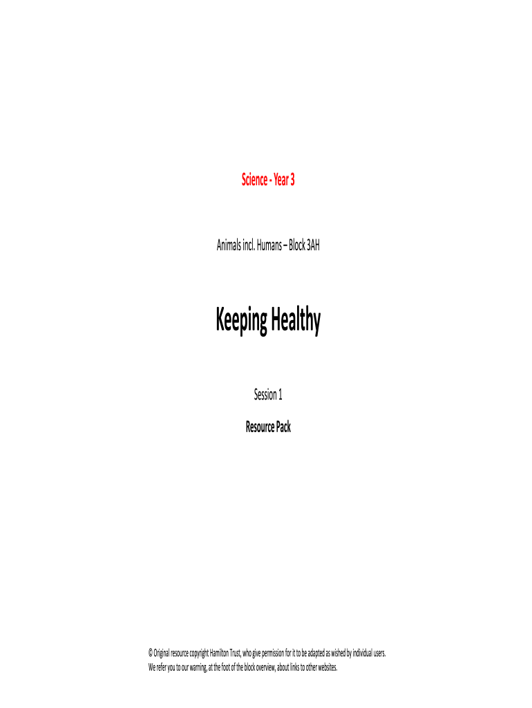 Science Year 3 Animals incl. Humans Block 3AHKeeping Healthy Session 1 Resource Pack Original resource copyright Hamilton Trust, who give permission for it to be adapted as wished by individual users.