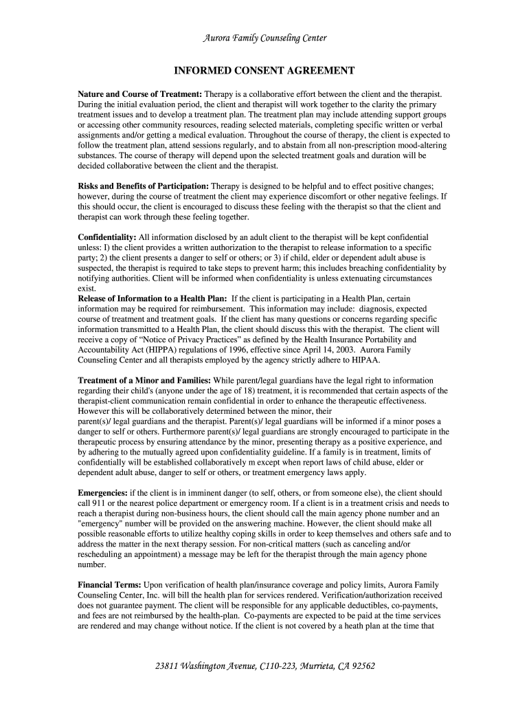 Nature and Course of Treatment: Therapy is a collaborative effort between the client and the therapist.