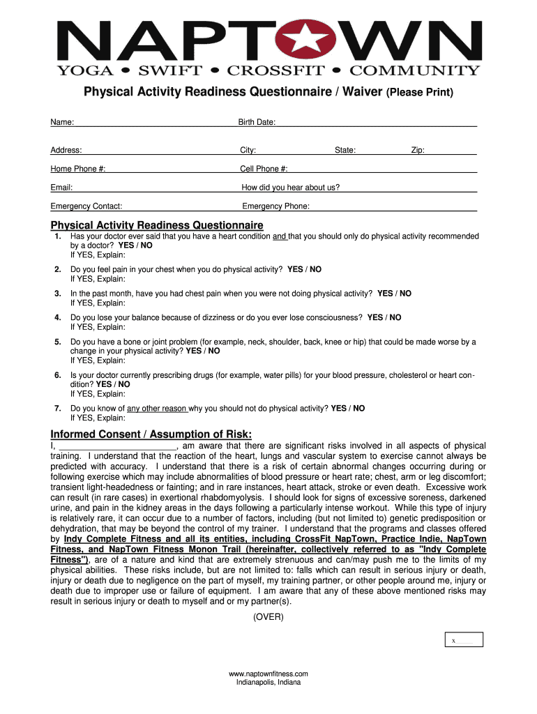 Physical Activity Readiness Questionnaire / Waiver (Please Print)