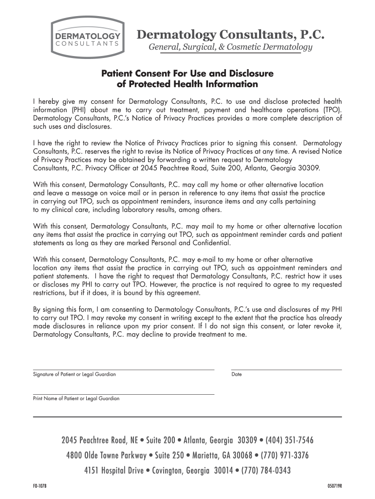 I hereby give my consent for Dermatology Consultants, P.C. to use and disclose protected health