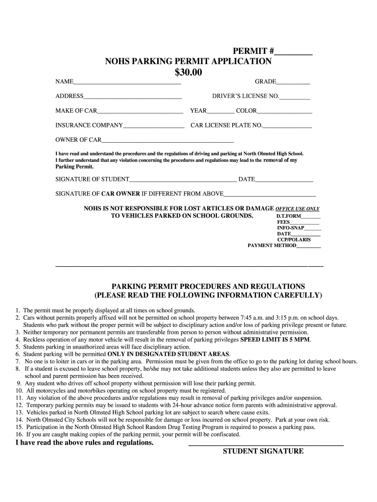 Get the free NOHS PARKING PERMIT APPLICATION
