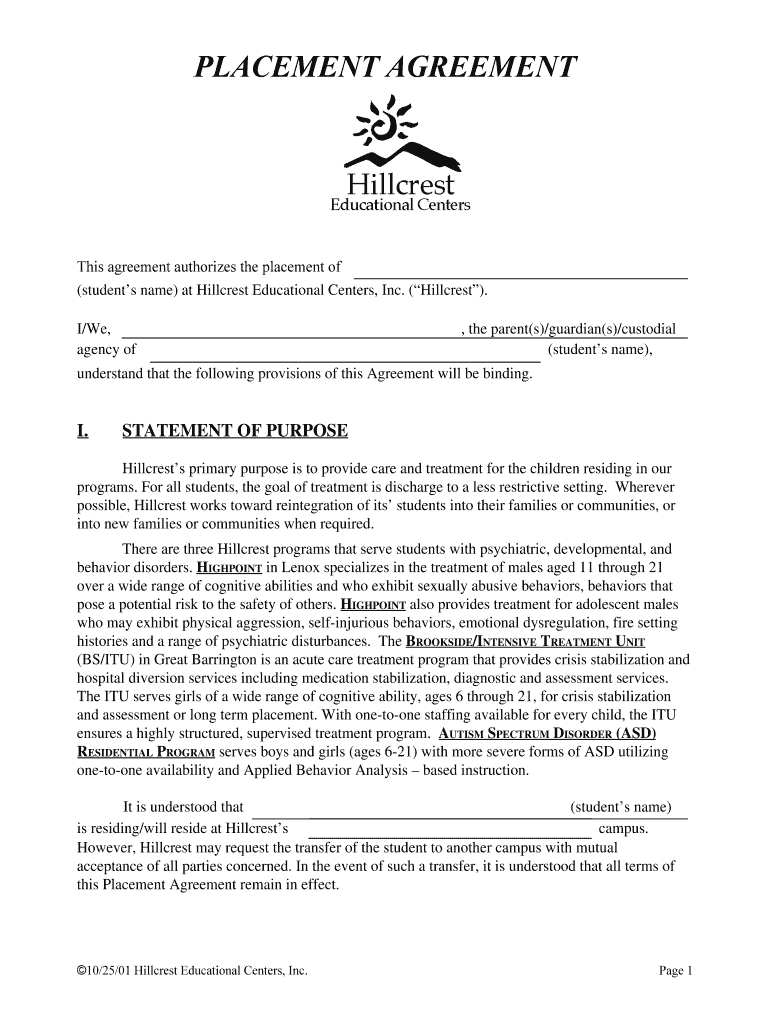 (students name) at Hillcrest Educational Centers, Inc. (Hillcrest).