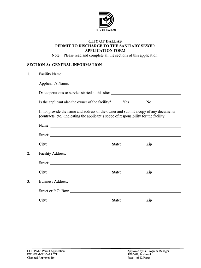 PERMIT TO DISCHARGE TO THE SANITARY SEWER