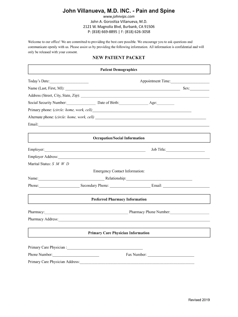 John Villanueva, M.D. INC. Pain and Spine www.johnvips.com John A. Gyros ZA Villanueva, M.D. 2121 W. Magnolia Blvd, Burbank, CA 91506 P: (818) 6698895 F: (818) 6263058Welcome to our office! We are