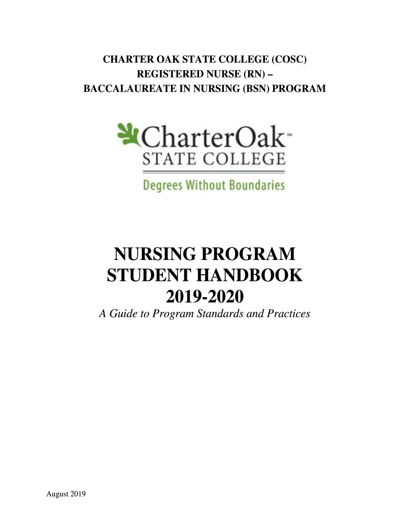 CHARTER OAK STATE COLLEGE (COST) REGISTERED NURSE (RN) BACCALAUREATE IN NURSING (BSN) PROGRAMNURSING PROGRAM STUDENT HANDBOOK 20192020 A Guide to Program Standards and Practices August 2019TABLE OF