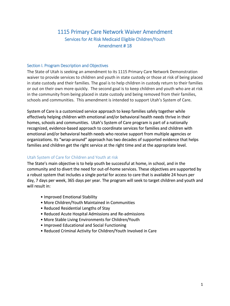 1115 Primary Care Network Waiver Amendment