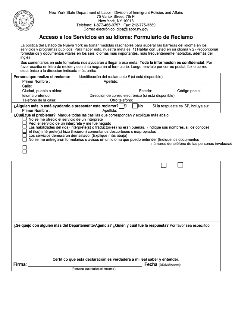 New York State Department of Labor Division of Immigrant Policies and Affairs 75 Va rick Street, 7th Fl New York, NY 10013 Teflon: 18774669757 Fax: 2127753389 Core electric: IPA labor.NY.gov Access