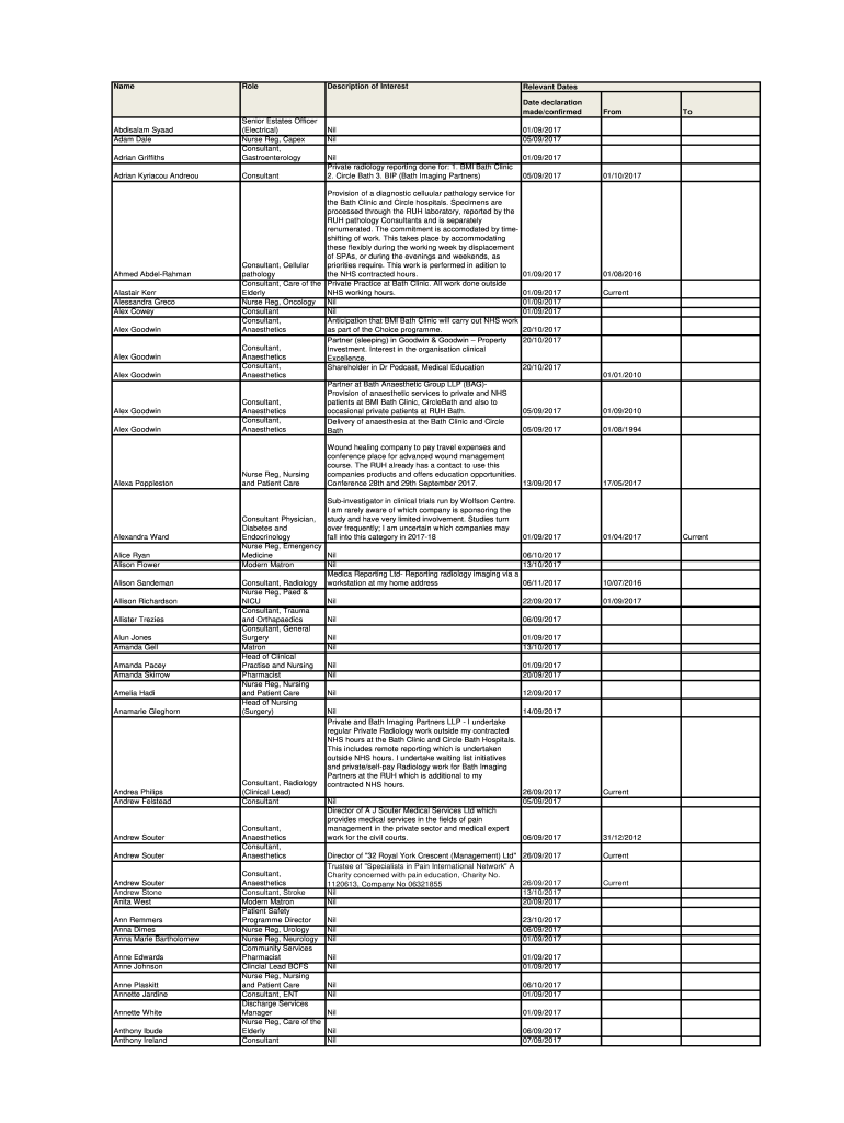 Get the free Name Role Description of Interest Date declaration made ...