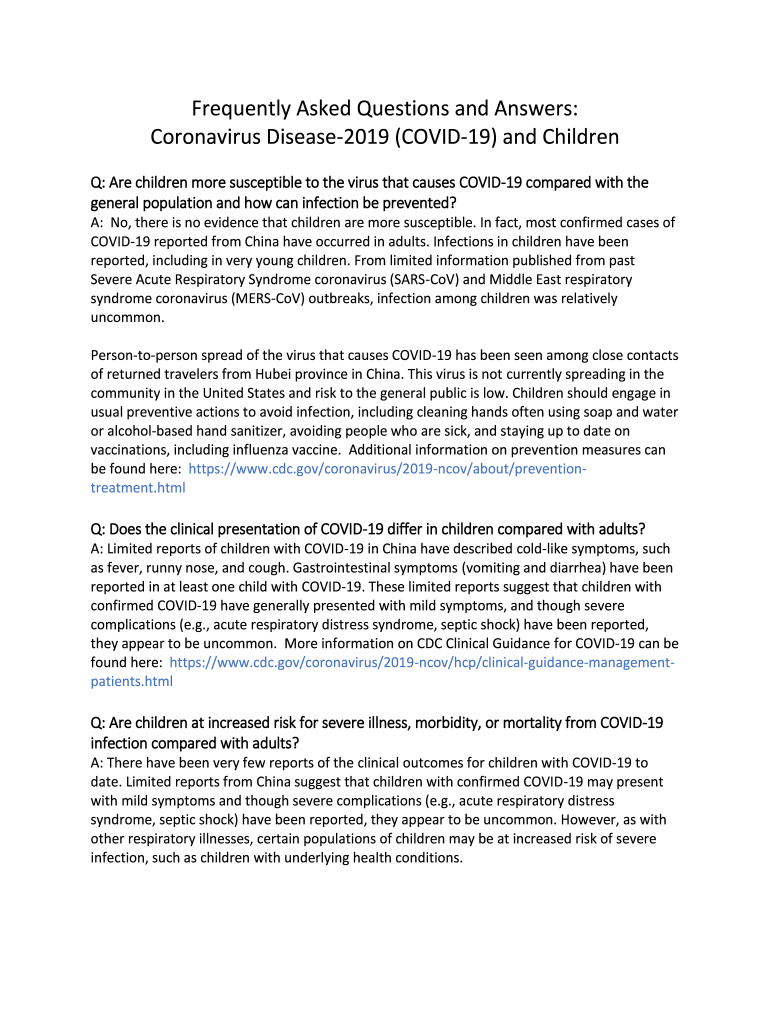 Q: Are children more susceptible to the virus that causes COVID-19 compared with the
