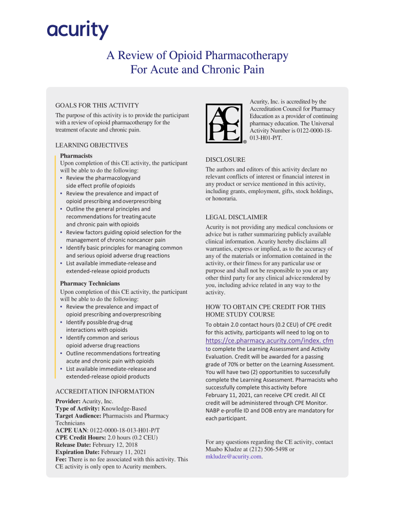 Get the free A Review of Opioid Pharmacotherapy For Acute and Chronic Pain