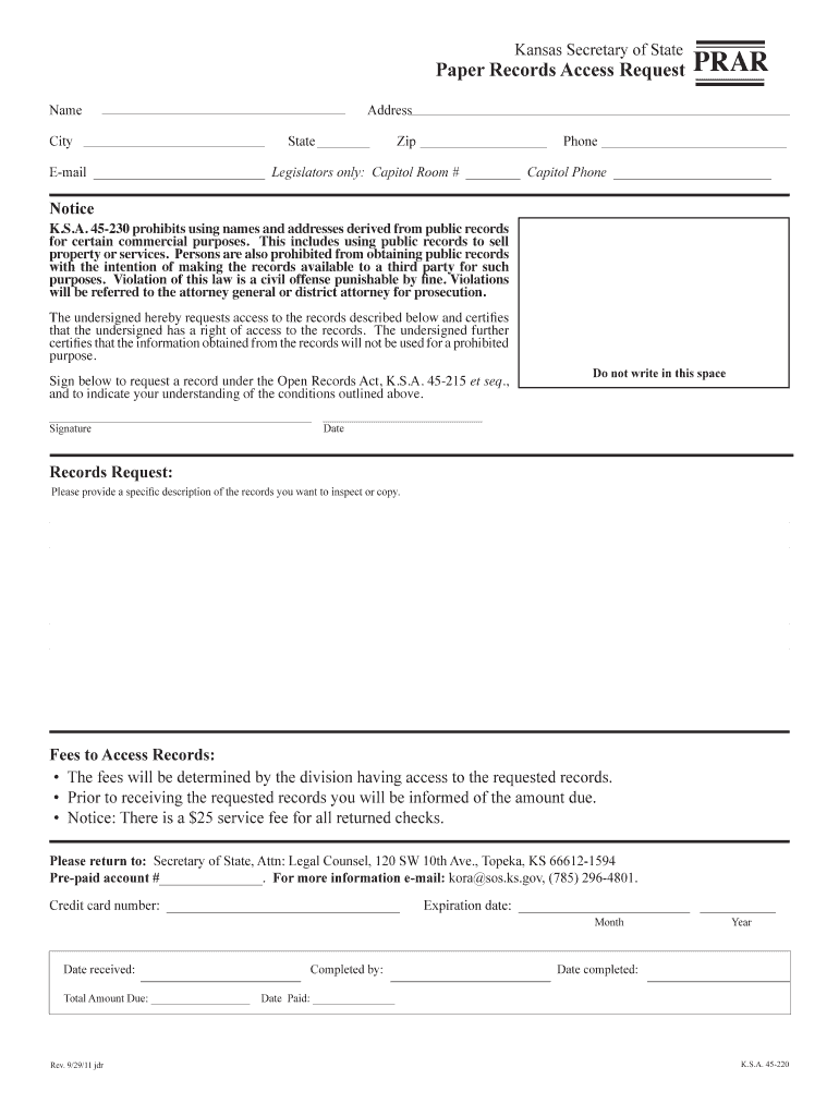 Common Errors When Filling Out the Kansas Paper Records Access Request