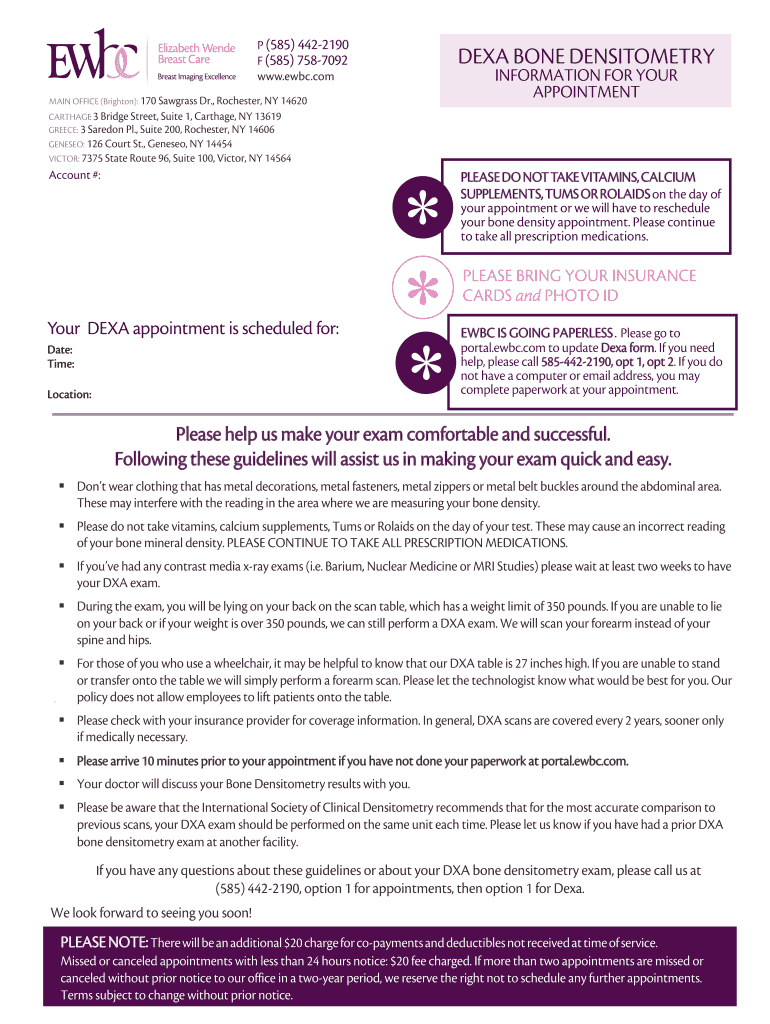 MAIN OFFICE (Brighton): 170 Saw grass Dr., Rochester, NY 14620DEXA BONE DENSITOMETRY