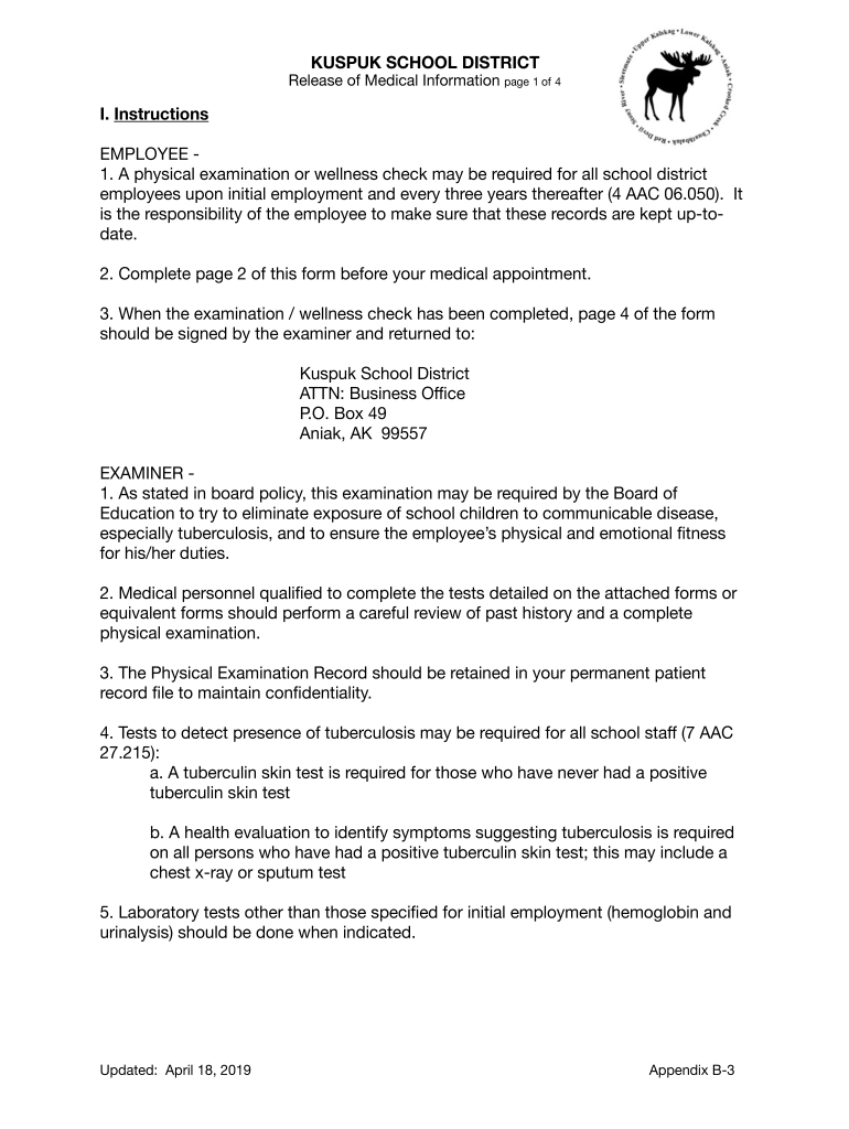 USPU SCHOOL DISTRICTRelease of Medical Information page 1 of 4I. InstructionsEMPLOYEE 1. A physical examination or wellness check may be required for all school district