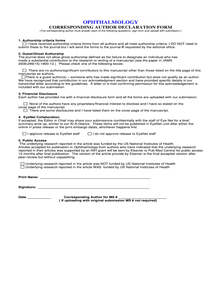 How to fill out 2012 corresponding author declaration
