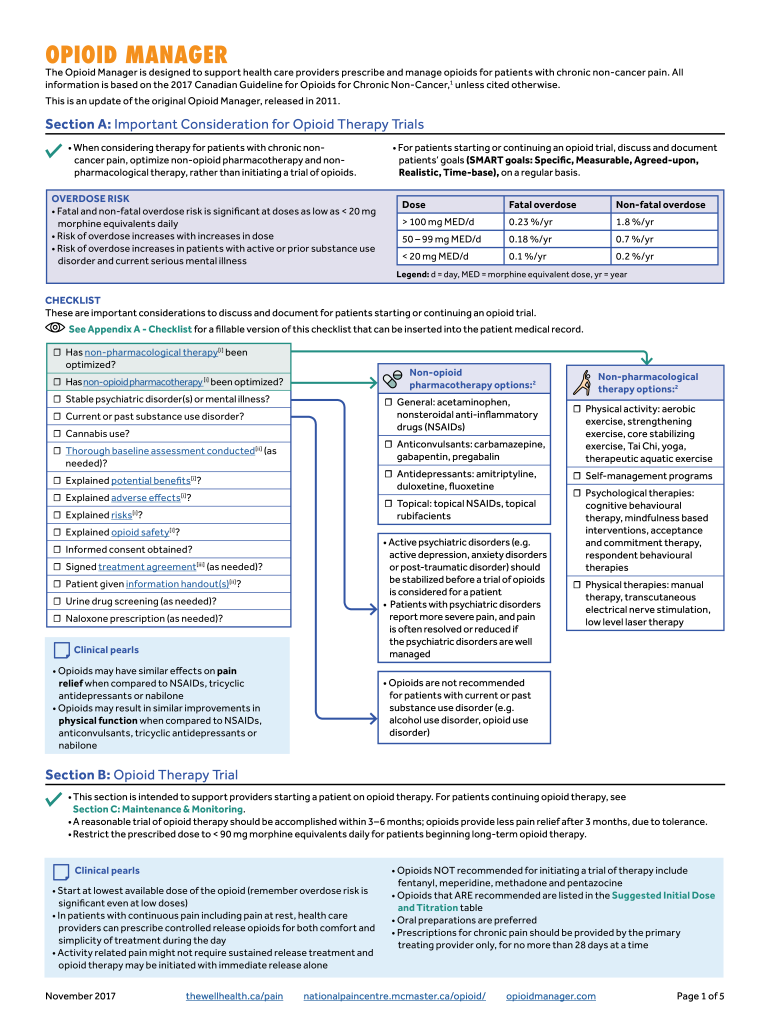 OPIOID Manager is designed to support health care providers prescribe and manage opioids for patients with chronic noncancer pain. All information is based on the 2017 Canadian Guideline for Opioids
