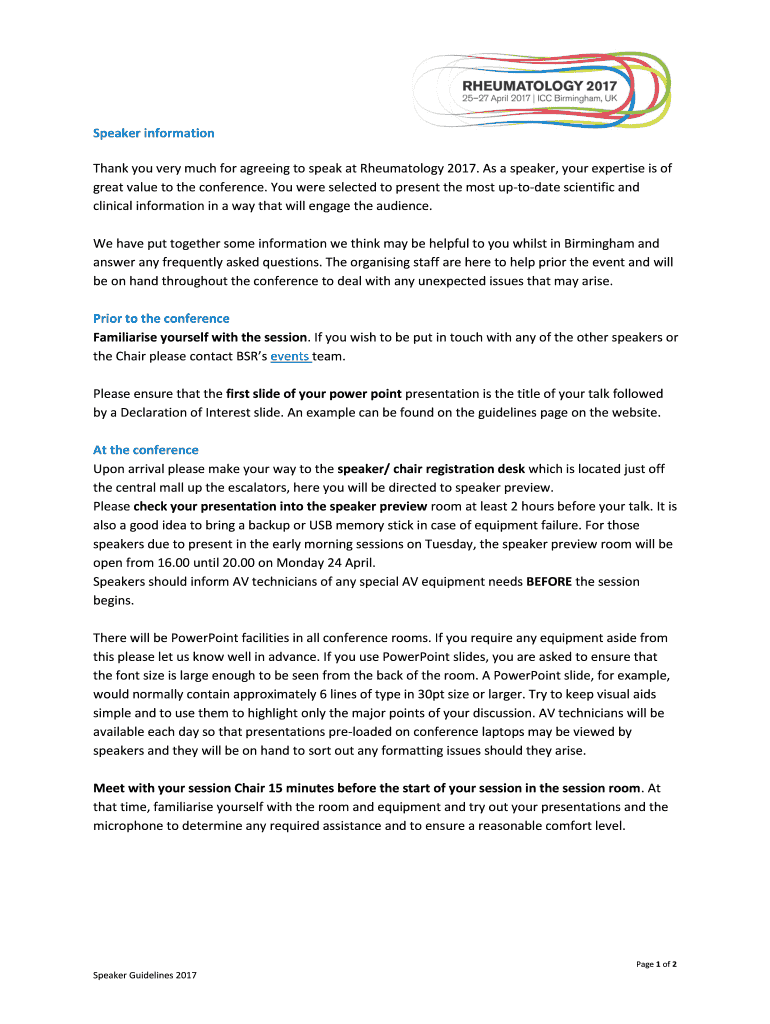 Get the free Speaker information Thank you very much for agreeing to ...