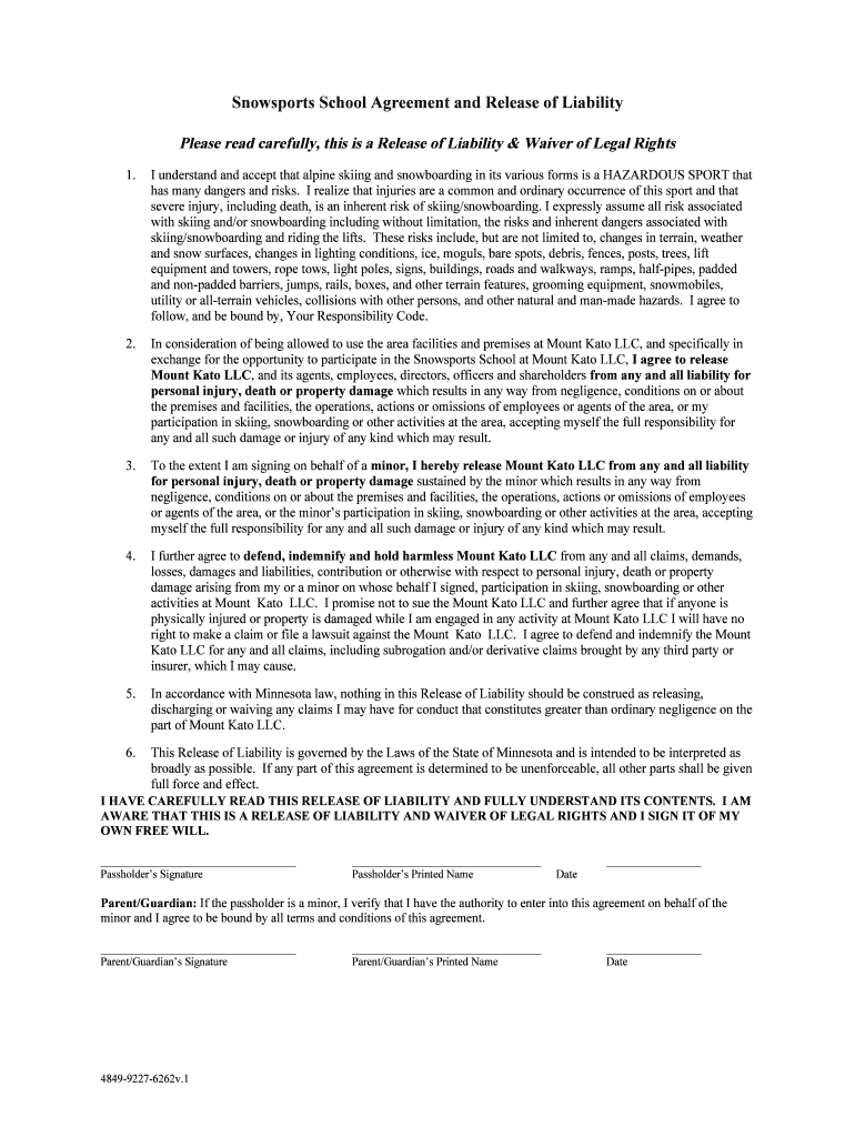 Get the free Snow Sports Agreement and Release of Liability.docx
