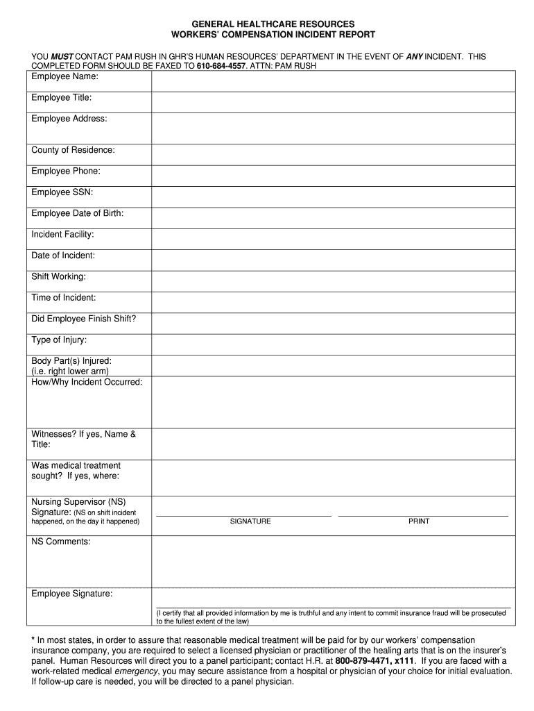 WORKERS COMPENSATION INCIDENT REPORT